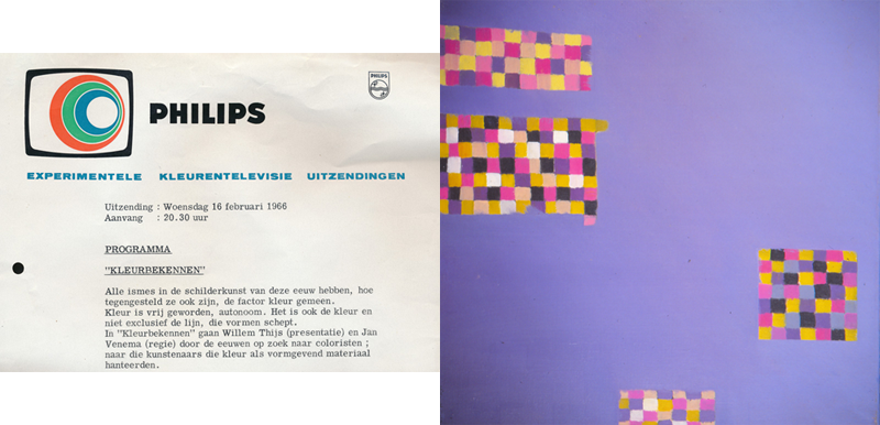 | 1966 | Philips Eindhoven, Experimentele kleurentelevisie: op zoek naar coloristen die kleur als vormgevend materiaal hanteerden in “Kleur bekennen”, Presentatie: Willem Thijs en Ageeth Scherphuis, Regie: Jan Venema |